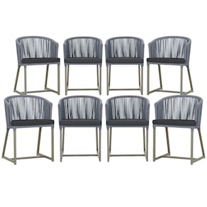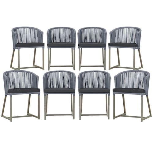 Combinando estilo e resistência, esta cadeira traz o melhor do design contemporâneo em alumínio com micro pintura e acabamento em corda náutica. O estofado impermeável completa o conforto e a funcionalidade, tornando-a ideal para ambientes externos e internos.