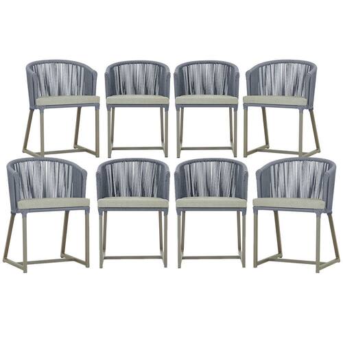 Combinando estilo e resistência, esta cadeira traz o melhor do design contemporâneo em alumínio com micro pintura e acabamento em corda náutica. O estofado impermeável completa o conforto e a funcionalidade, tornando-a ideal para ambientes externos e internos.