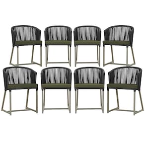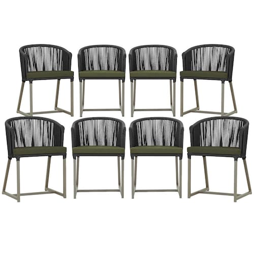 Combinando estilo e resistência, esta cadeira traz o melhor do design contemporâneo em alumínio com micro pintura e acabamento em corda náutica. O estofado impermeável completa o conforto e a funcionalidade, tornando-a ideal para ambientes externos e internos.