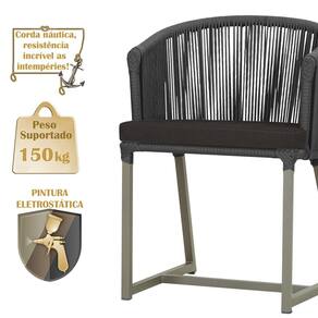 Combinando estilo e resistência, esta cadeira traz o melhor do design contemporâneo em alumínio com micro pintura e acabamento em corda náutica. O estofado impermeável completa o conforto e a funcionalidade, tornando-a ideal para ambientes externos e internos.