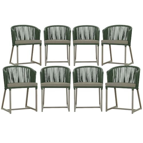 Combinando estilo e resistência, esta cadeira traz o melhor do design contemporâneo em alumínio com micro pintura e acabamento em corda náutica. O estofado impermeável completa o conforto e a funcionalidade, tornando-a ideal para ambientes externos e internos.