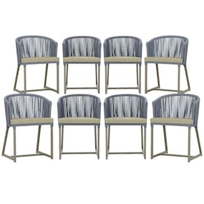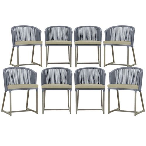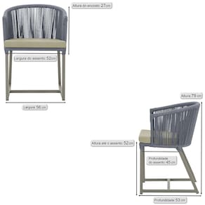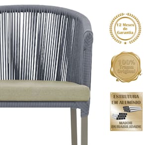Combinando estilo e resistência, esta cadeira traz o melhor do design contemporâneo em alumínio com micro pintura e acabamento em corda náutica. O estofado impermeável completa o conforto e a funcionalidade, tornando-a ideal para ambientes externos e internos.