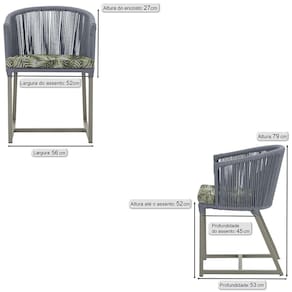 Fotos meramente ilustrativas. Tonalidades podem variar dependendo do monitor. Os objetos que ambientam as Fotos não acompanham o produto. Antes de comprar o seu produto verifique as medidas, o local onde pretende instalar e se necessário contratar o serviço de um profissional qualificado. Produto conhecido como: Cadeira Noronha, Cadeira de alumínio, Corda náutica, Estofado impermeável, Móveis de exterior, Cadeira resistente à água, Design moderno em Cadeira, Cadeira para área externa, Cadeira de jardim, Móveis para varanda, Cadeira durável, Cadeira de alta qualidade, Conforto em Cadeira, Cadeira elegante.