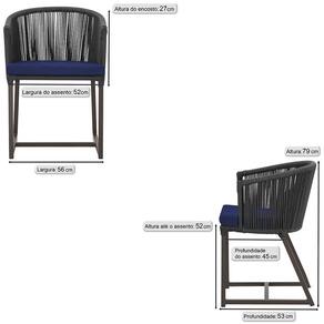 Combinando estilo e resistência, esta cadeira traz o melhor do design contemporâneo em alumínio com micro pintura e acabamento em corda náutica. O estofado impermeável completa o conforto e a funcionalidade, tornando-a ideal para ambientes externos e internos.