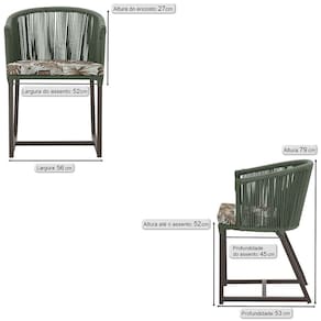 Combinando estilo e resistência, esta cadeira traz o melhor do design contemporâneo em alumínio com micro pintura e acabamento em corda náutica. O estofado impermeável completa o conforto e a funcionalidade, tornando-a ideal para ambientes externos e internos.