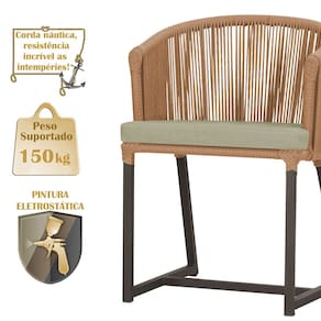 Fotos meramente ilustrativas. Tonalidades podem variar dependendo do monitor. Os objetos que ambientam as Fotos não acompanham o produto. Antes de comprar o seu produto verifique as medidas, o local onde pretende instalar e se necessário contratar o serviço de um profissional qualificado. Produto conhecido como: Cadeira Noronha, Cadeira de alumínio, Corda náutica, Estofado impermeável, Móveis de exterior, Cadeira resistente à água, Design moderno em Cadeira, Cadeira para área externa, Cadeira de jardim, Móveis para varanda, Cadeira durável, Cadeira de alta qualidade, Conforto em Cadeira, Cadeira elegante.