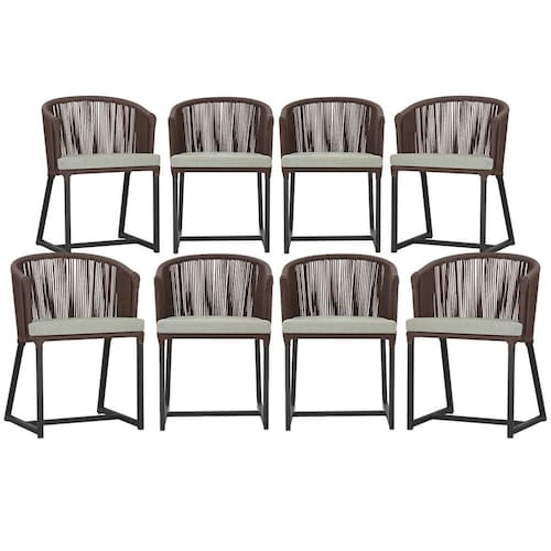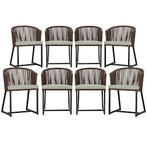 Combinando estilo e resistência, esta cadeira traz o melhor do design contemporâneo em alumínio com micro pintura e acabamento em corda náutica. O estofado impermeável completa o conforto e a funcionalidade, tornando-a ideal para ambientes externos e internos.