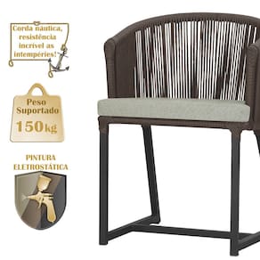 Fotos meramente ilustrativas. Tonalidades podem variar dependendo do monitor. Os objetos que ambientam as Fotos não acompanham o produto. Antes de comprar o seu produto verifique as medidas, o local onde pretende instalar e se necessário contratar o serviço de um profissional qualificado. Produto conhecido como: Cadeira Noronha, Cadeira de alumínio, Corda náutica, Estofado impermeável, Móveis de exterior, Cadeira resistente à água, Design moderno em Cadeira, Cadeira para área externa, Cadeira de jardim, Móveis para varanda, Cadeira durável, Cadeira de alta qualidade, Conforto em Cadeira, Cadeira elegante.