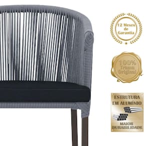 Combinando estilo e resistencia, esta cadeira traz o melhor do design contemporaneo em aluminio com micro pintura e acabamento em corda nautica. O estofado impermeavel completa o conforto e a funcionalidade, tornando-a ideal para ambientes externos e internos.