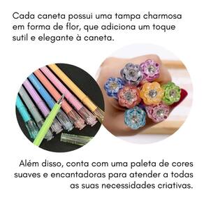 8 Caneta Hidrográfica Fineliner 8 Cores Pastel Diamond KZ720 Caneta Hidrográfica Fineline Diamond - Kit com 8 cores pastel Transforme sua escrita e desenhos com o kit exclusivo de 8 canetas hidrográficas Fineline Diamond. Cada caneta conta com uma ponta fina de 0.5mm, ideal para traços macios, precisos e delicados, perfeita para escrita, anotações, lettering e ilustrações. O grande diferencial está no design sofisticado: tampas em formato de flor que deixam seu material de papelaria ainda mais encantador. As cores pastel proporcionam um toque moderno e elegante, tornando este kit indispensável para estudantes, artistas e amantes de papelaria criativa.