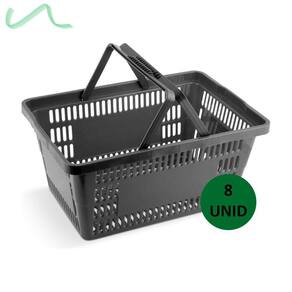 8 Cestas Cestinha Plastica Preta Reforçada Supermercado Mercado 16 Litros