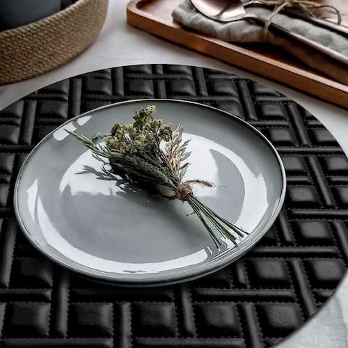 Esse Jogo Americano possui lindo desenho em relevo acentuado proporcionando um excelente efeito visual à mesa e combina com diversos tipos de louças e ambientes. Feito com material de alto padrão de qualidade, sua gravação imita costuras com perfeição, mas ao mesmo tempo ele não retém resíduos de alimentos e é muito fácil de limpar proporcionando praticidade para o dia a dia.
