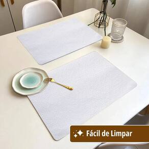 Jogo Americano Cestaria Branco Nada como um jogo americano para deixar a sua mesa mais bonita e elegante para a hora da refeição. Feito com material flexível, impermeável, resistente e fácil de limpar. Possui gravação em relevo acompanhando a estampa de cestaria. Contém 8 peças. DIMENSÕES: Largura: 29cm Altura: 0,1cm Comprimento: 44cm Limpe com um pano úmido ou lave com água e sabão neutro. Somos fabricantes, por isso o melhor preço para essa matéria prima. Um produto Idealiza Comercio de Utilidades Marca: Não Informado