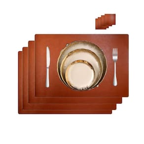 8 jogo americano couro impermeável limpa facil para mesa Cor: caramelo Tamano: 43x30 Jogo americano couro retangular + porta copos