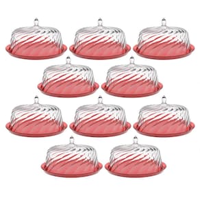 8 Porto Bolos com Cúpula 30cm Torta Doces Crippa Confeitaria Hotel Vermelho Transparente.