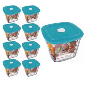 Pote De Vidro Quadrado Com Tampa Marinex 1L 8 unidades