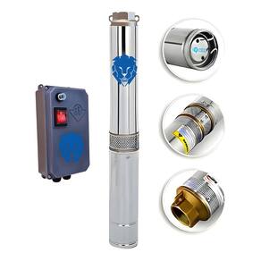• Rotor de fluxo radial fabricado em poliacetal. • Difusor em policarbonato. • Corpo da válvula e corpo de sucção em bronze. • Crivo em Aço inox. • Eixo da motobomba em aço inox. • Válvula de retenção incorporada. • Corpo da motobomba em aço inox 304. • Bocal de saída com rosca BSP 1 1/4”. • Especificações de acoplagem do motor de acordo com a Norma NEMA. • Motor elétrico IP-68, 2 polos, 60 Hz, lubrificado a óleo. • Temperatura máxima do líquido bombeado: 35 °C. • Vazão: 0,3 a 6 m³/h. • Altura Manométrica: 35 a 187 m.c.a.