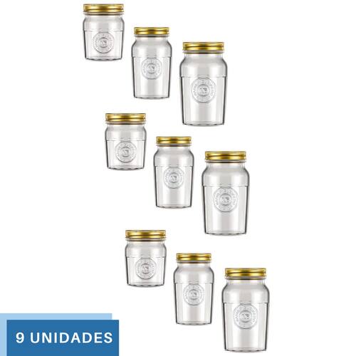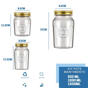 Kit Pote Americano Mantimento Vidro Vintage 500ml ,1000ml e 1500ml Nadir 9 unidades