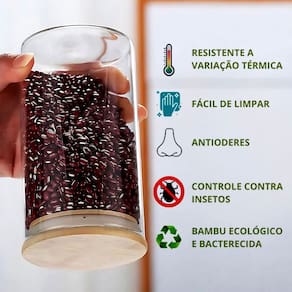 Conservação Ideal para Alimentos: Este pote de vidro resistente é pensado para manter seus alimentos sempre frescos e livres de odores. Com uma tampa de bambu que fecha bem, ele ajuda a preservar o sabor e a qualidade dos ingredientes, mantendo tudo saboroso e pronto para o uso.