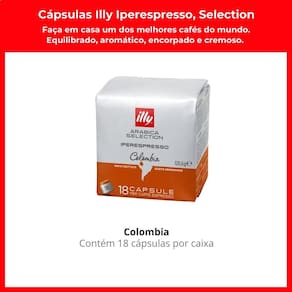 As cápsulas IperEspresso illy permitem que você prepare um café extraordinário em casa com facilidade e praticidade. Cada cápsula contém café 100% arábica, perfeitamente torrado e moído, de cultivo 100% sustentável. O resultado é um autêntico café italiano equilibrado, encorpado, cremoso e nunca amargo. O sistema de cápsulas IperEspresso faz um café espresso com qualidade e facilidade. O sistema de cápsulas iperEspresso usa um processo patenteado de dois estágios para criar um espresso aromático e encorpado com uma crema rica e duradoura. Descubra os cafés das melhores origens do mundo. A torra de cada origem é especialmente calibrada para realçar as notas aromáticas naturais e o perfil de sabor do café. Sobre as cápsulas illy Iperespresso - Café de alta qualidade, conhecido no mundo inteiro pela sua excelência. - Produto , fabricado na Itália. - Uma das melhores e mais famosas marcas de café do mundo. - Café com uma crema maior e mais duradoura. Conteúdo 5 pacotes de 18 cápsulas. Totalizando 90 cápsulas. Sabor Colômbia Notas de chocolate e caramelo com toques de , baunilha, pão torrado e frutas cítricas. O aroma é rico: o café encorpado possui o equilíbrio perfeito do doce, amargo e ácido. Café 100% arábica. Dose: espresso. Sem açúcar. Modelos de cafeteiras compatíveis Estas cápsulas funcionam em todos os modelos de máquinas Iperespresso Illy. Atenção: essas cápsulas não funcionam nas cafeteiras Dolce Gusto, Três Corações, Delta e Nespresso. Essas marcas usam outros modelos de cápsulas. Observações Validade: 2 Anos Fabricado na Itália. Marca: Não Informado