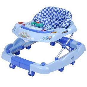 O andador Baby Coupé conta com encosto acolchoado, bandeja removível contendo brinquedos com luzes, sons e movimentos divertidos, altura regulável em quatro posições e base ampla e resistente com oito rodízios.