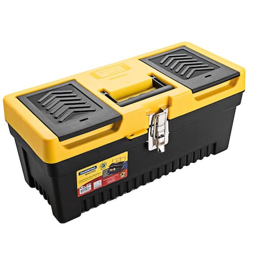 Manter as ferramentas organizadas e facilitar o transporte das peças de um lado para o outro é a finalidade das caixas plásticas da Tramontina Master, que possuem bandeja removível e trava metálica. Indispensável para quem gosta de deixar as ferramentas sempre em ordem, as caixas também são ideais para guardar artigos de pesca, entre outros acessórios. Porque não basta ter a ferramenta certa, é preciso ter ela sempre à mão.