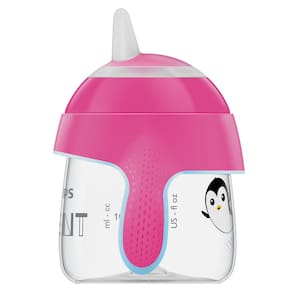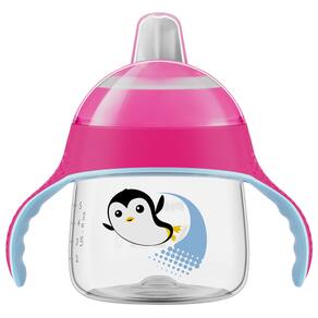 O Copo Pinguim Philips Avent possui 200ml de capacidade e está disponível na cor rosa. Ele acompanha 1 bico macio, alça, válvula e 1 tampa higiênica encaixável.