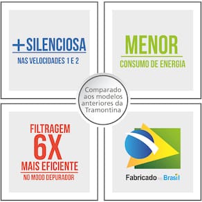 Já na função Depurador o ar passa pelo filtro metálico e de carvão e retorna livre para o ambiente sem qualquer tipo de impureza.