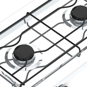 - Acendimento manual - Espalha chamas esmaltados e bases em alumínio - 2 queimadores médios - Mesa em inox brilhante - Tampa de aço pintado - Trempe de arame esmaltado - Botões expostos de fácil limpeza - 4 pés fixos - Entrada do gás lado direito visto de frente - Tipo de gás: GLPTipo