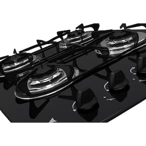 - Eficiência Energética “A” / Selo CONPET. - Acendimento super automático. - Voltagem bivolt 127V-220V. - Mesa em vidro temperado nas cores branco, preto e prata. - Botões de fácil limpeza. - Espalhadores esmaltados. - Possui 3 queimadores pequenos e 1 grande. - Trempe de chapa com 5 pontos de apoio e arco em arame 5,4mm. - Conexão do gás com rosca externa de ½’ pol. - Entrada do gás lado direito visto de frente. Obrigatório uso de mangueira metálica flexível. - Tipo de gás: GLP.Alimentação