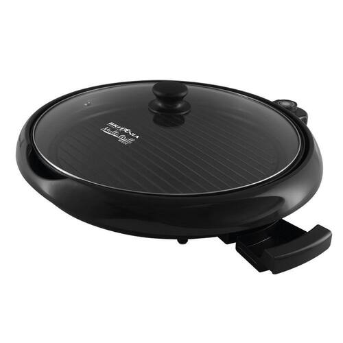 Grill redondo com chapa ondulada e antiaderente;