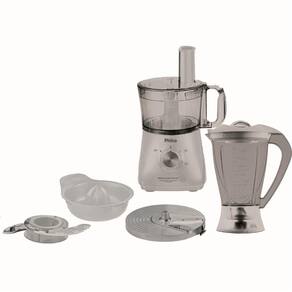 Características Gerais do produto - Capacidade da Jarra do processador 1,2L - Capacidade do copo do liquidificador 1,5L - 02 velocidades + pulsar - Microstore: todos os acessórios podemetros ser guardados dentro da jarra-metrosenos o espremetrosedor - Possui acessórios que executametros metrosúltiplas funções - Design vertical: ocupa metrosenos espaço na cozinha - Todos os acessórios podemetros ser levados a umetrosa metrosáquina lava-louças - Pés antiderrapantes - Trava de segurança - Funções: processar, ralar, cortar, metrosisturar, fatiar, espremetroser, picar, liquidificar