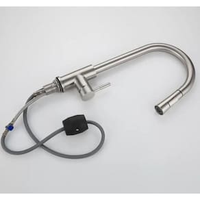 Torneira Cozinha Monocomando Gourmet Aço Escovado Cor: Aço Escovado A torneira de cozinha monocomando gourmet extensível tem design luxuoso e sofisticado. Possui cartucho de cerâmica e monocomando central de alta durabilidade que permite controlar o fluxo e a temperatura da água com um único comando, praticidade, tecnologia e muita elegância. Informações Técnicas: Material: Liga de CobreAcabamento: Aço EscovadoPressão Mínima: 4 McaPressão Máxima: 40 McaTemperatura máxima da água: 90C - temperatura recomendada 65cConexão: Furo na bancada: 35mm O produto também pode ser utilizado somente com água fria, sendo necessária a instalação de adapador tipo T não incluso . Itens inclusos: Torneira, flexíveis, contrapeso e kit para fixação. Recomendação de limpeza: Limpar apenas com pano macio e sabão neutro. Não usar produtos abrasivos como sapólio, palha de aço e produtos químicos. Marca: Alpes Metais