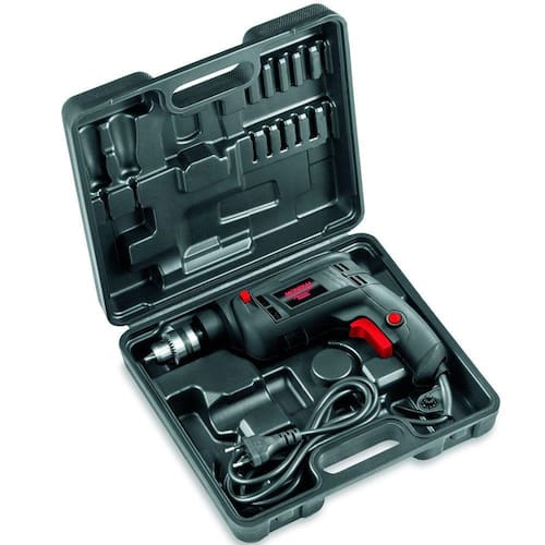 A Furadeira de impacto FI-09M da Mondialpossui um potente motor com potência de 550W e velocidade de 2.800 rotação por minuto, seu mandril tem capacidade para brocas de até 3/8" (10mm) de diâmetro. É 100% rolamentada, proporcionando assim maior resistência e durabilidade. Conta ainda com trava de gatilho, ideal para realização de trabalhos longos. A Furadeira FI-09M é ideal para uso doméstico emperfurações de madeiras, metais, plásticos, alvanária e concreto. A furadeira é acompanhada de maleta plástica que facilita o seu transporte e armazenamento.