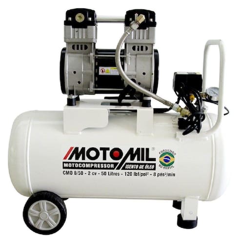 O Compressor de Ar Médico Odontológico CMO-8/50 Motomil é Ideal para ser utilizado em clínicas médicas e odontológicas por ser isento de óleo, possuir reservatório adequado e ser mais silencioso, com filtro redutor de barulho.