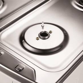 A mesa desse fogão é em inox selada, material que impede que os líquidos passem para o interior do fogão, para garantir ainda mais organização, e os botões são removíveis, o que garante uma limpeza ainda mais eficiente.