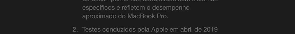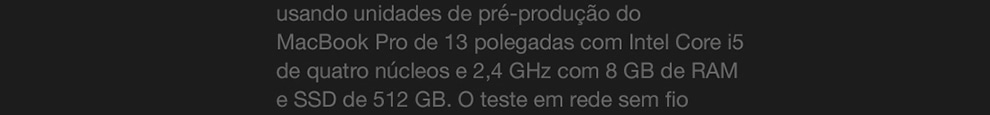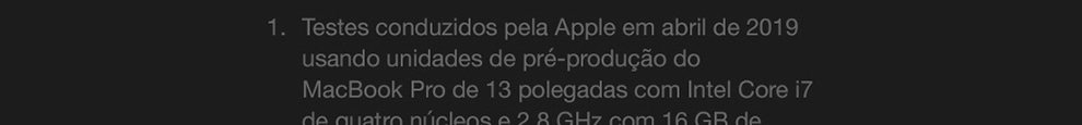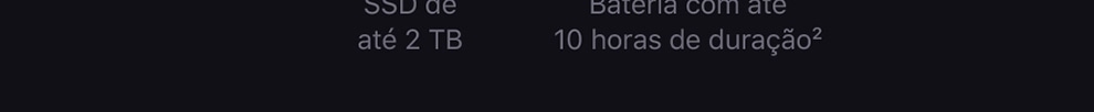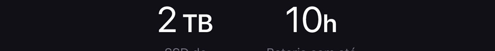O MacBook Pro leva o notebook para outro patamar de eficiência e mobilidade. Com recursos como processador e memória de alto desempenho, chip gráfico avançado e armazenamento ultrarrápido, todas as suas ideias ganham fôlego para ir muito mais longe. Tudo isso em uma estrutura compacta de menos de 1,4 kg.