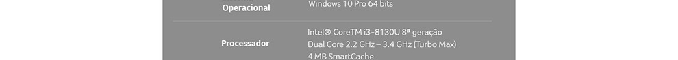 Intel® Core i3-8130U 8ª geração Dual Core 2.2 GHz - 3.4 GHz