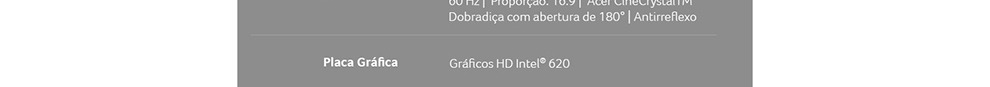 Gráficos HD Intel® 620 (memória compartilhada com a RAM e alocada dinamicamente até 16GB).
