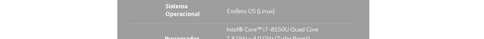 Intel® Core- i7-8550U Quad Core 1.8 GHz - 4.0 GHz (Turbo Boost)Sistema operacional