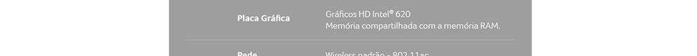 - Gráficos HD Intel® 620 memória compartilhada com a memória RAM