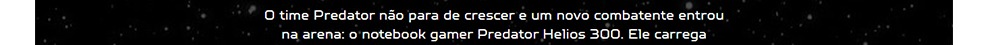 O time Predator nao para de crescer e um novo combatente entrou na arena: o notebook gamer Predator Helios 300. Ele carrega linhas agressivas e uma configuracao que impoe respeito em qualquer competiao. Prepare-se para um novo level.