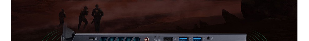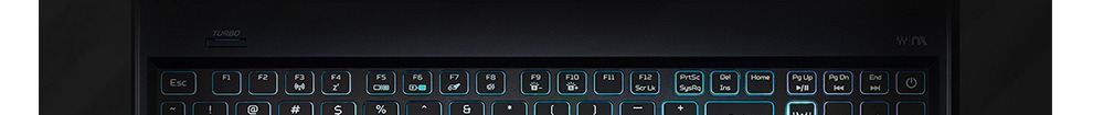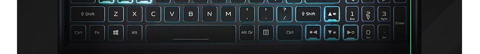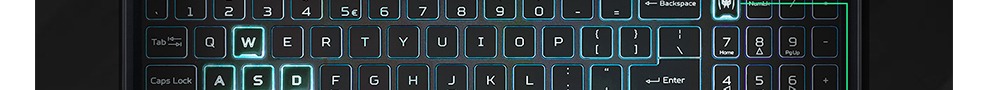 A tela possui tecnologia antireflexo e o teclado retroiluminado em azul com destaque para as teclas WASD, setas e PredadorSense