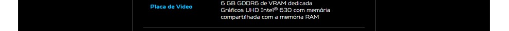NVIDIA GeForce GTX 1660TI com 6 GB GDDR6 de VRAM dedicada