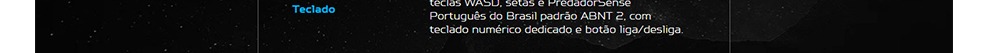 Teclado: tipo membrana em português do Brasil padrao ABNT 2 com teclado numerico dedicado , retroiluminado em azul com destaque para as teclas WASD, setas e PredadorSens