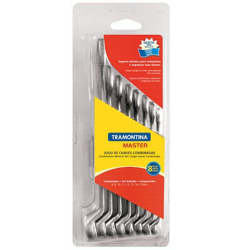 O jogo de chaves combinadas Tramontina é submetido a teste de dureza realizado em vários pontos para assegurar a resistência ao desgaste da chave durante o uso ininterrupto. As aberturas das bocas das chaves de aperto são verificadas com gabaritos calibrados, o que garante seu perfeito acoplamento nos parafusos.