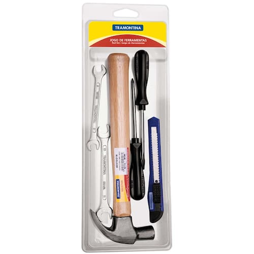 Um conjunto que vai ser muito útil na sua casa! Esse jogo de ferramentas, da Tramontina, conta com ferramentas produzidas e testadas conforme normas específicas. Vêm com peças fundamentais como: martelo de unha, chave de fenda, chave philips, chaves fixas e estilete estreito.