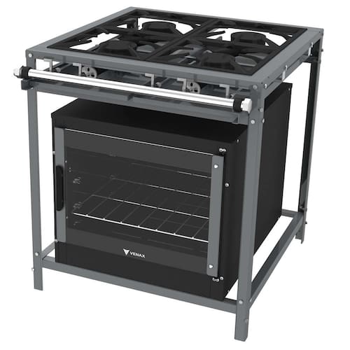 Além disso, conta com um puxador ergonômico, travamento mecânico, 1 prateleira removível, além de 4 queimadores com diâmetro 200 mm, bem como bandejas coletoras, mesa em aço carbono em formato de U e registro à gás com manípulos expostos e de fácil manuseio.