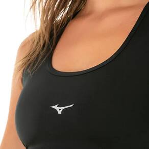 O Top Mizuno Essence tem design minimalista, trazendo o logo da marca estampado na parte frontal e alças finas. É confeccionado em poliamida, que favorece a eliminação do suor e oferece ajuste leve.