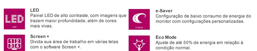 - Painel LED LCD IPS - Frequência de varredura horizontal: 30 KHz ~ 83 KHz - Frequência de varredura vertical: 50 ~ 76 Hz - Largura de banda: 170 MHz - Compatibilidade: Windows, Mac e Linux - Suporte de cores: maior que 16 milhões - Conectores: Analógico (RGB) / HDMI (Digital) / HDMI MHL (Digital com suporte para smartphone) / DisplayPort (Digital) - DCB (Amplificação Dinâmica de Cores) - DCR (Relação de Contraste Dinâmico) - Consumo: Ligado < 35 Watts (típico), Stand By < 0,5 Watt - Alto-falantes: 2 W + 2 W - Fonte: Interna - 90~240V - 50/60 Hz - Plug & Play: DDC 2B/CI - Energy Star: Sim (EPA) - Controles manuais: Entrada / Auto / Sair, Esquerda / Clear Vision, Direita / Formato de imagem, Menu / Enter, Power - Função OSD (On Screen Display): OSD com interface gráfica amigável e i-Menu (controle pelo mouse) - On screen display digital: 15 idiomas, entre eles Português, Inglês, Francês, Espanhol, Alemão, Italiano, Russo e Chinês - VESA (sistema internacional de furação para fixação em paredes ou painéis): 75 x 75 mm - Normas / segurança / certificações: CCC, FCC, CE, TUV-Bauart, EPA, ISO9241-307,ROHS ,Win7/8, TCO6.0Infelizmente não temos estoque do produto que você está procurando no momento.